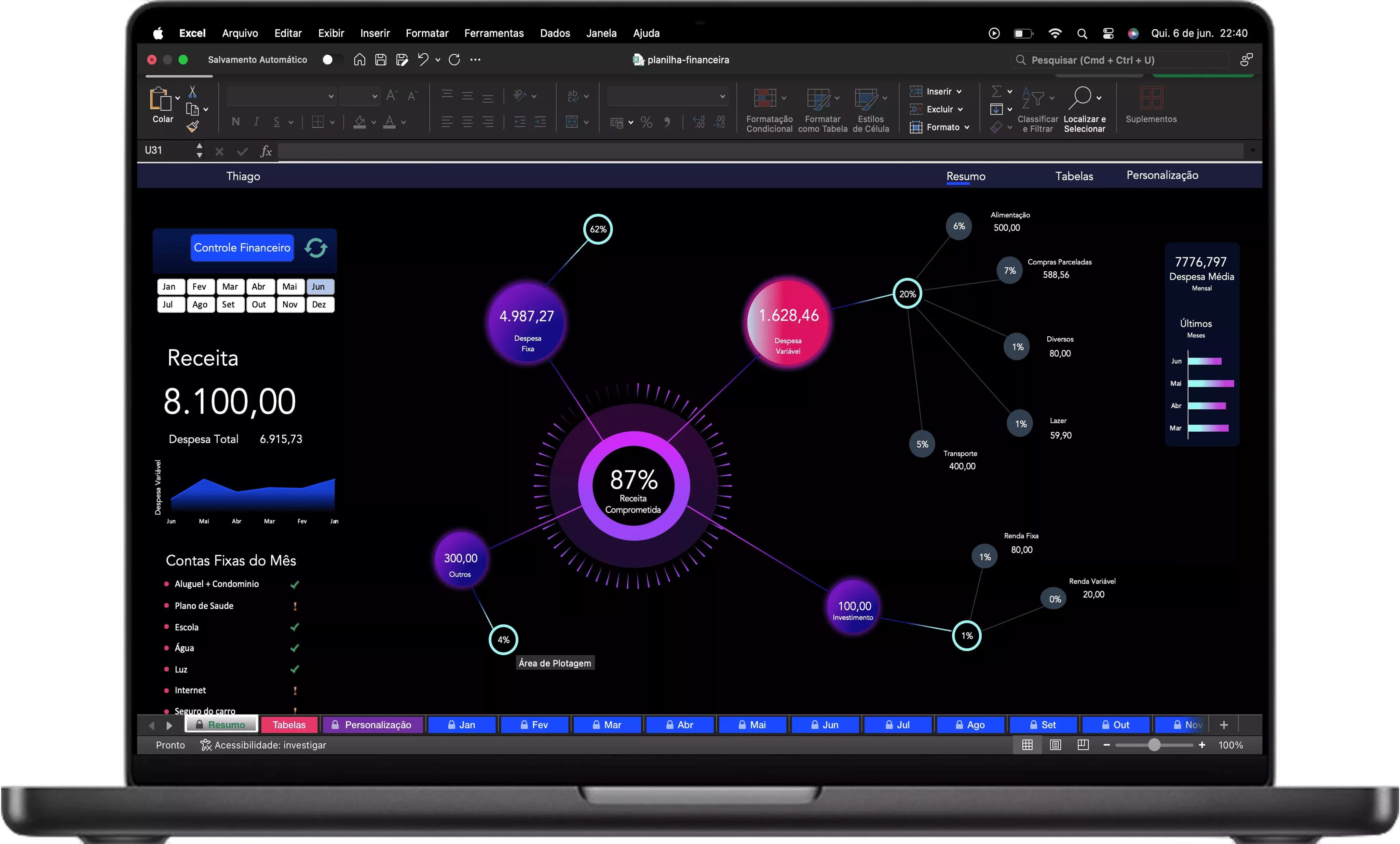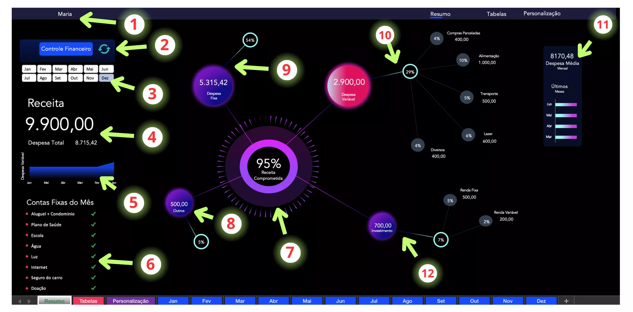 Personaliza a planilha de acordo com suas despesas e investimentos