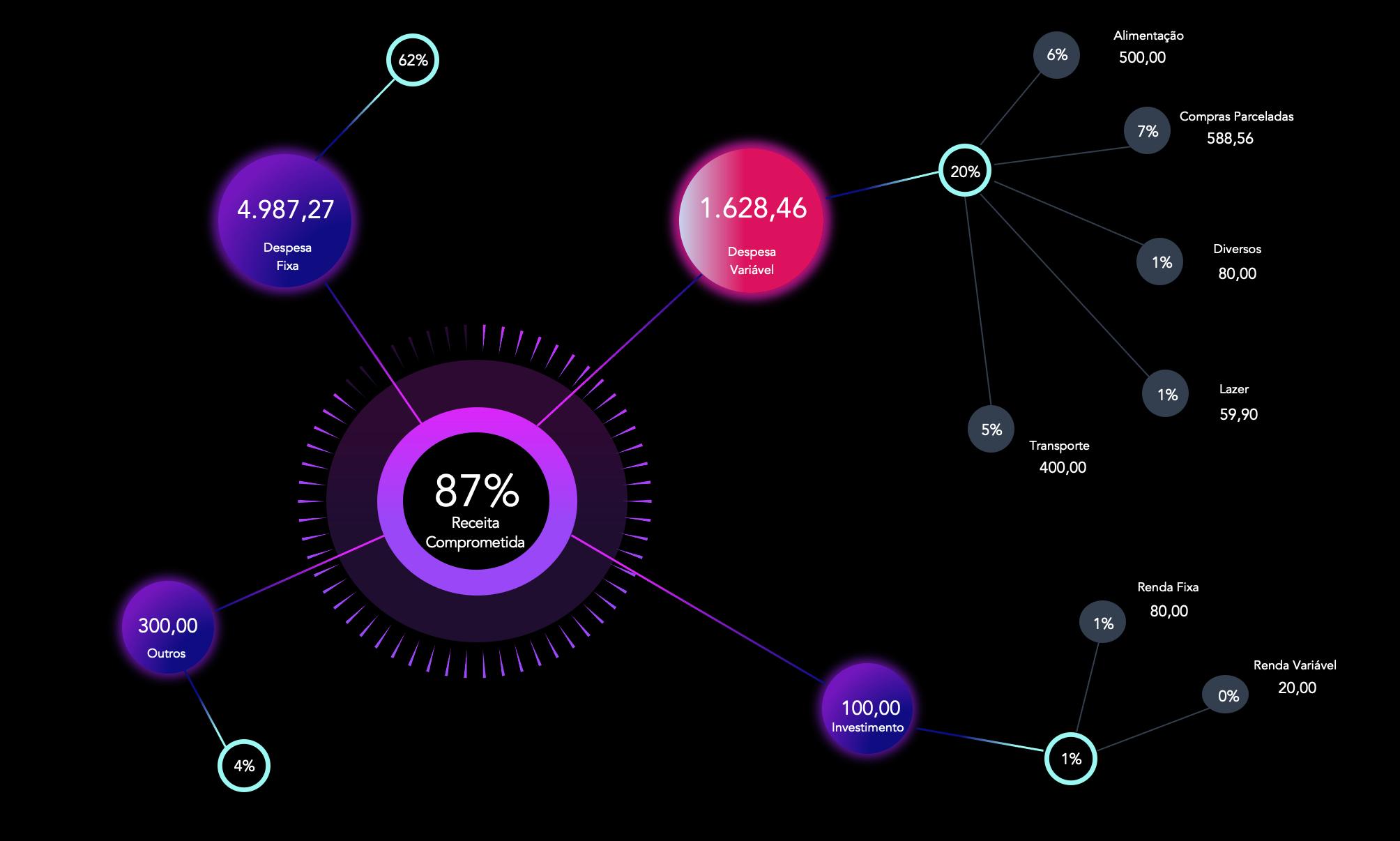 Receita Comprometida: Mostra quanto já foi gasto do seu salário no mês.